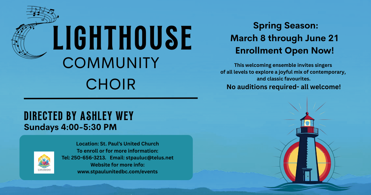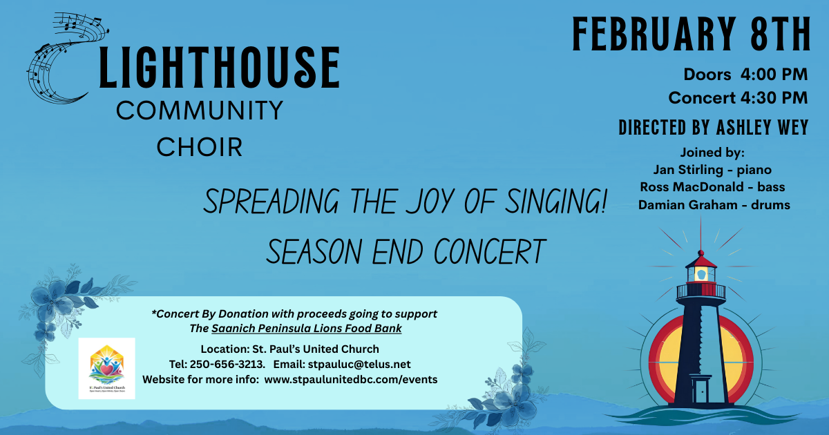 The Lighthouse Community Choir is a vibrant and uplifting ensemble making its debut in Sidney, B.C., bringing together individuals from diverse backgrounds through the unifying power of music. The choir offers a welcoming space for both seasoned singers and enthusiastic newcomers.
